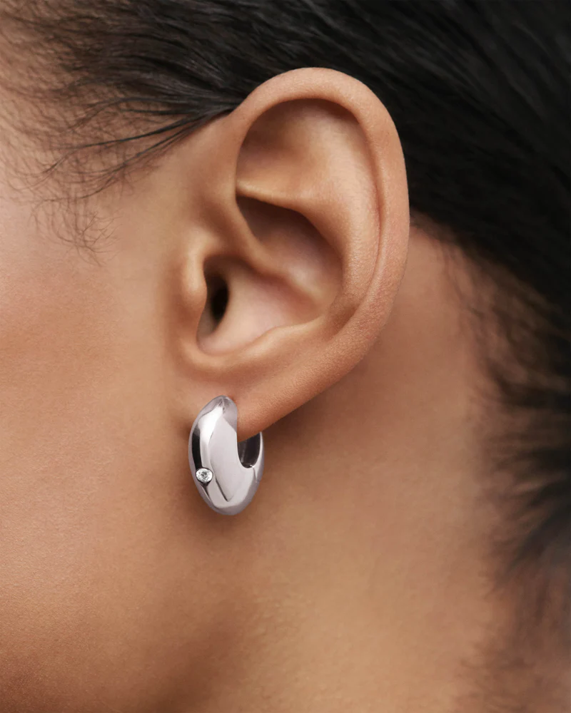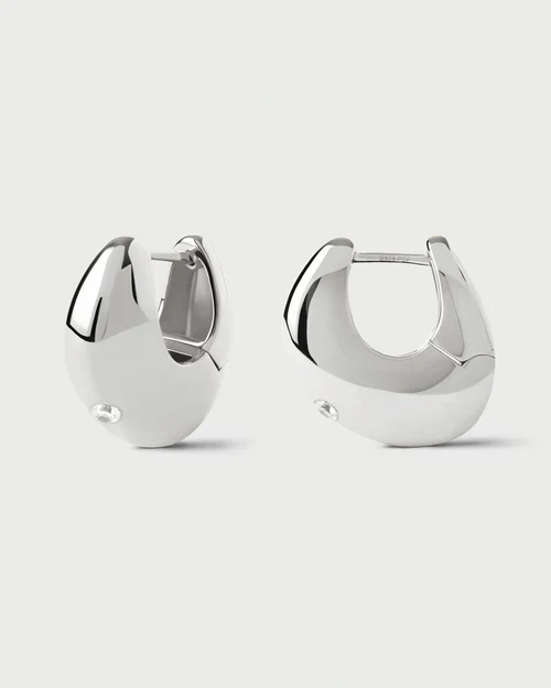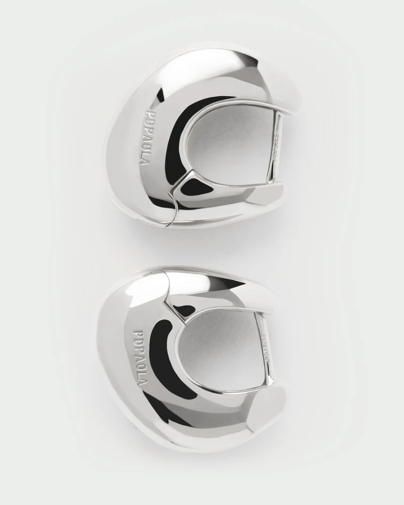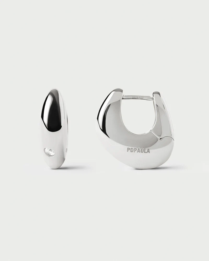 Orecchini scultorei in argento dal design asimmetrico ornati di zirconi bianchi