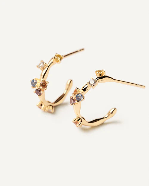 DELICATE GOLD PLATED SILVER HOOP EARRINGS WITH FIVE COLORS CUBIC ZIRCONIA: