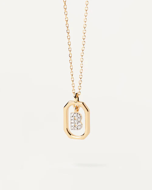Ciondolo ottagonale piccolo in argento placcato oro con iniziale B in zirconi