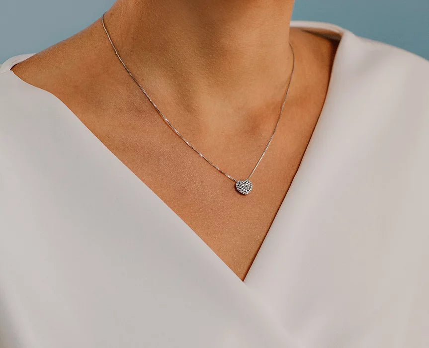 Girocollo in Oro bianco 750 ‰ . Diamanti P.Ct. 22 Colore G, Catena con moschettone a goccia, Collezione Love Heart