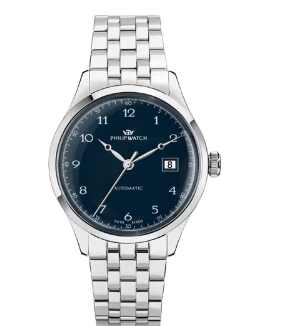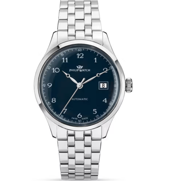 Genere : Uomo, Materiale e finitura cassa: Acciaio, Misura cassa: 40.00mm, Spessore cassa: 12.05mm, Finitura cassa: Lucido, satinato, Colore cassa: Silver, Materiale cinturino: Acciaio, Colore cinturino: Silver, Chiusura: Fibbia farfalla con pulsanti, Swiss made: Sì, Water resistant: 10 atm, Garanzia: Ufficiale 2 anni Philip Watch, Confezione: Originale Philip Watch, Philip Watch experience: Classic, Classic