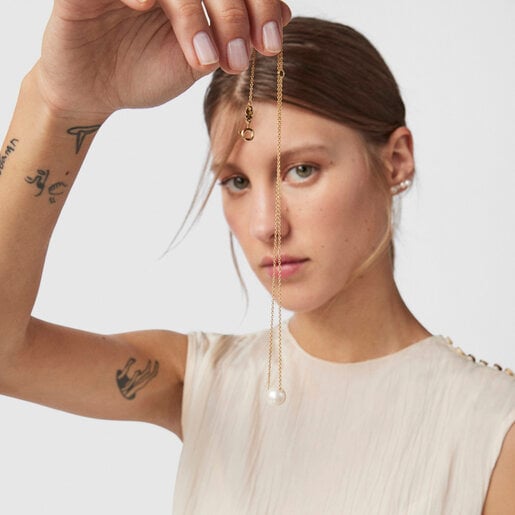 TOUS Gloss necklace in silver vermeil with 10 mm round cultured freshwater pearl. Necklace length: 45 cm, with ring at 40 cm. Sterling silver plated with 18kt gold with a thickness of 3 to 5 microns and with no other metal between them. Production technique: Mechanized.